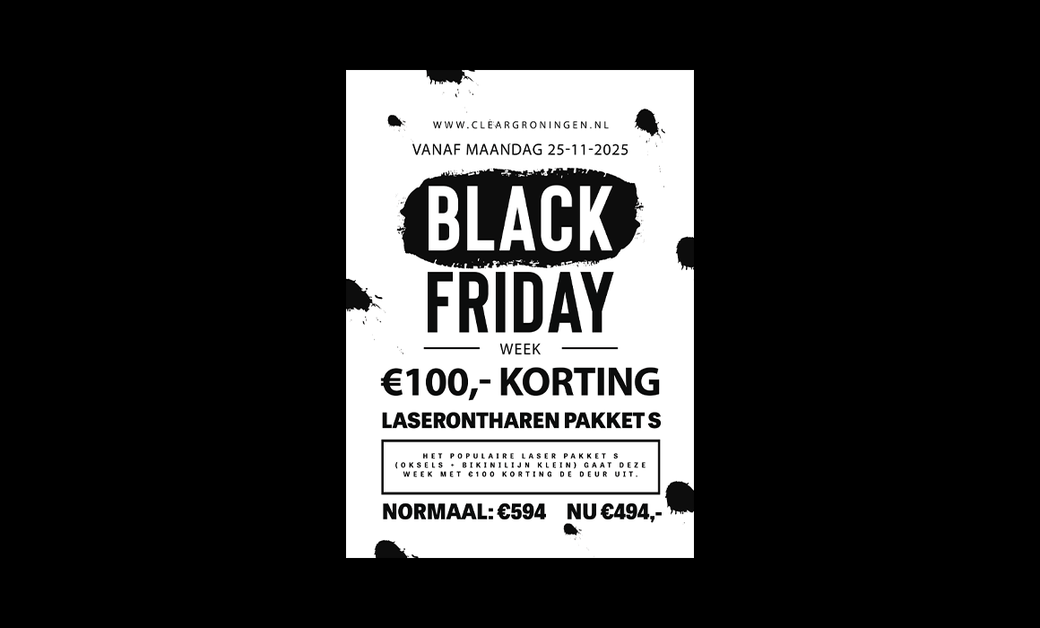 Dit is dé Black Friday deal van Groningen: het populaire Laser Pakket S (oksels + bikinilijn klein) gaat deze week met maar liefst €100 korting de deur uit. Een actie die normaal gesproken binnen één dag is uitverkocht op Instagram.